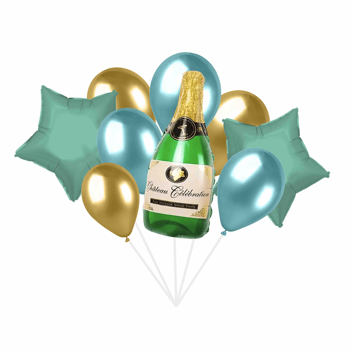 Bouquet de ballons de champagne vert et or.